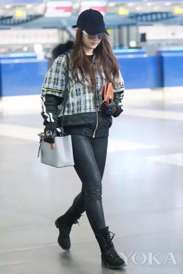 刘亦菲全身武装,穿起了皮裤,小粗腿亮了。