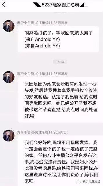 YY户外第一人小白龙媳妇发文,指其在酒店养小三。要打掉怀孕六个月的孩子!小白龙回应:孩子没得那一刻,我会出来。