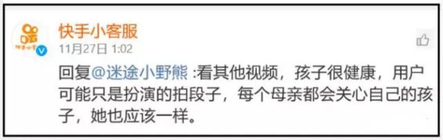 你可能会好奇,作为视频平台方,快手不管管吗?对此,认证为“快手官方客服”的官微是这样回复网友: