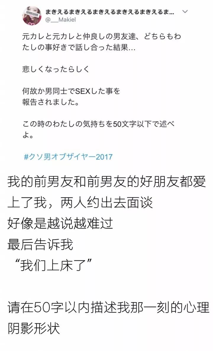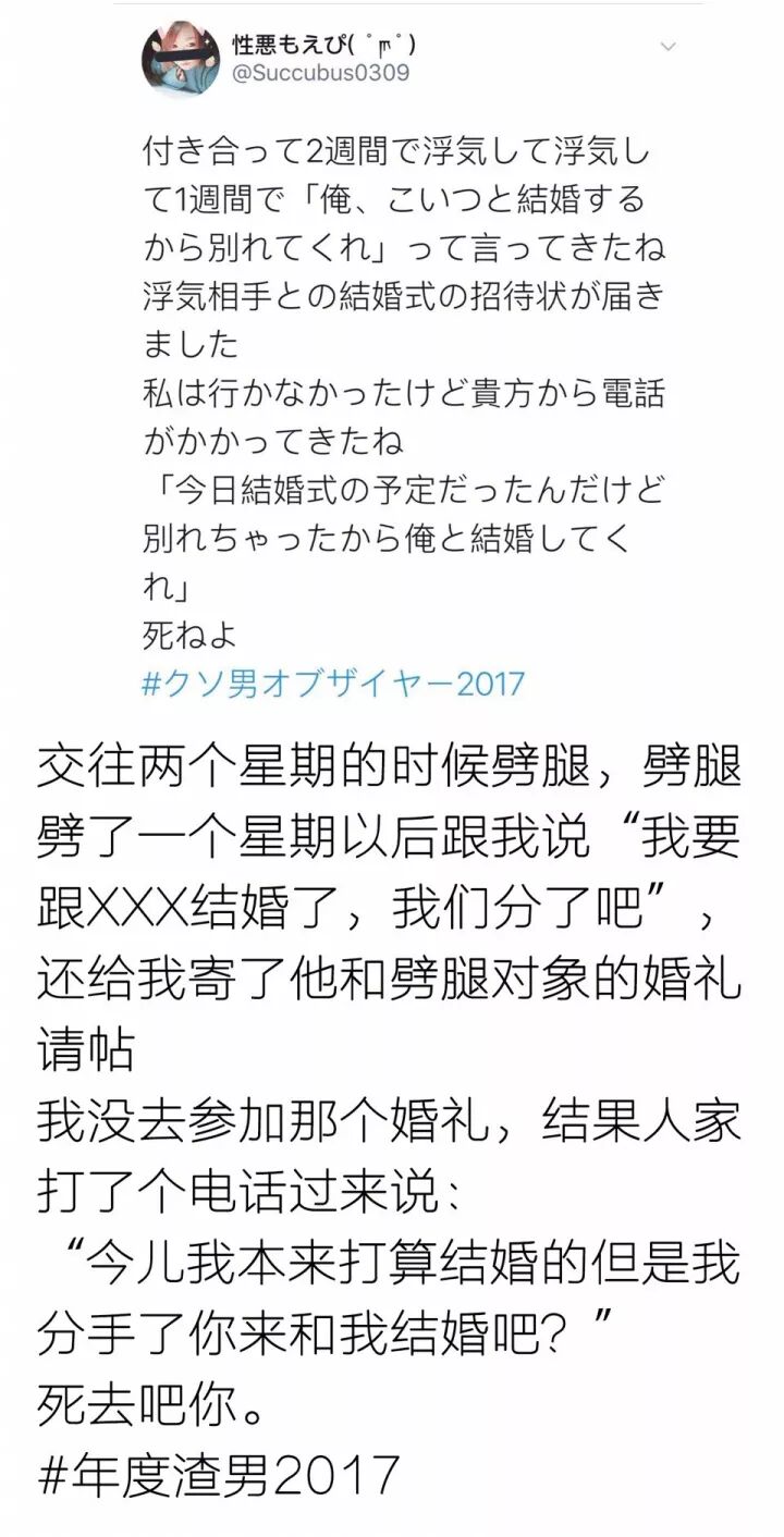 内容是岛国妹子吐槽自己遇到过的渣男