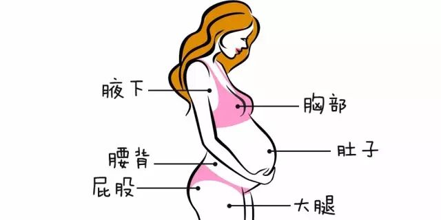 (大多数人的妊娠纹会长在腹部、大腿内外侧和胸)