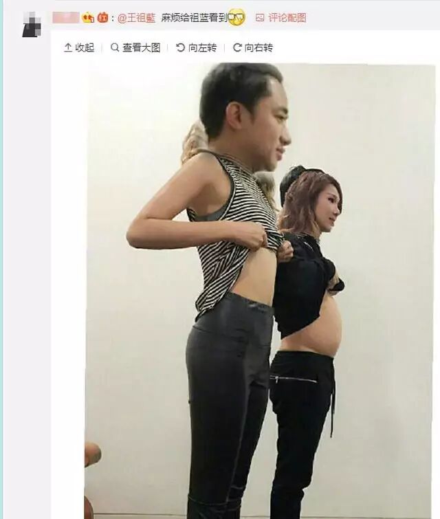 这不,王祖蓝果然站出来了,发了一条微博,一段文字一张图。文字是“催生团,你们催错人吧。”而配图,则是王祖蓝与李亚男二人的肚子。李亚男的肚子,没有一点凸起的意思,一看,就没有孕相。而王祖蓝自己的肚子,则是中年男人发福的鱼腩肚。不得不说,这大油肚的王祖蓝,看起来的确像是怀孕好几个月了。也因为这样的一张照片,王祖蓝的玩笑,便成立了。但在这样的玩笑当中,事情的真相,也得到了及时的回应。