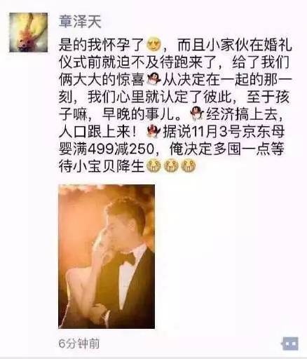 在当天晚上,奶茶妹妹就在朋友圈里承认已怀孕,并大方承认“小家伙在婚礼仪式前就迫不及待跑来了”。还不忘和刘总裁秀恩爱,刘总裁更示爱娇妻,“爱谁谁说了啥,反正我就爱我老婆”!