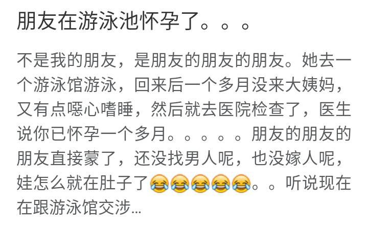 朋友圈有人说,由于各种原因,泳池内会有精液,女性游泳,可能会怀孕。