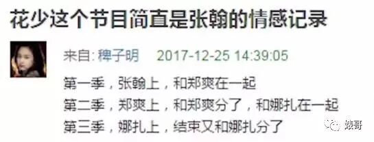 要说最近最意想不到最精彩的猛料是什么,那一定是张翰娜扎分手的这条新闻,当天就有瓜友表示花少这个节目那是真·有毒