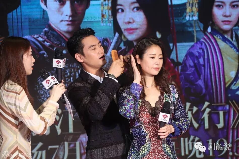 话说《秀丽江山》片方心也够大的,今晚开播,今天才举行发布会。发布会上,袁弘还给林心如梳头!