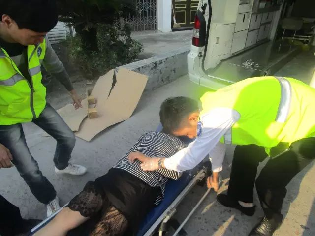 刻不容缓,民警迅速组织同时赶到的120救护人员一起抬上救护车送往医院救治。
