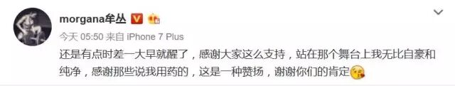 还是有点时差一大早就醒了,感谢大家这么支持,站在那个舞台上我无比自豪和纯净,感谢那些说我用药的,这是一种赞扬,谢谢你们的肯定。