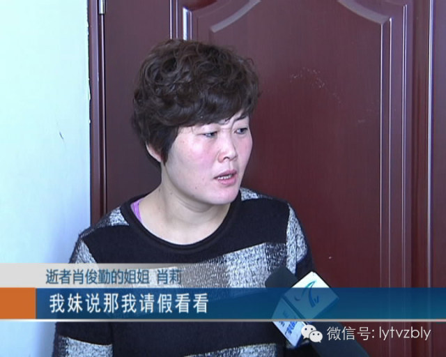 肖俊勤姐姐 肖莉:都在说那不行你请假不再去了呗,因为我们中间一直在讨论这事儿,说你不去了呗,我妹说那我请假看看,所以在请假的过程中公司的经理说,我当不了家。下来又给经理打电话,经理就跟她说那不中,这是总公司下达的集训,他说不中你跟总公司请假吧,她在上车的时候都在一直犹豫,我去是不去,去是不去。