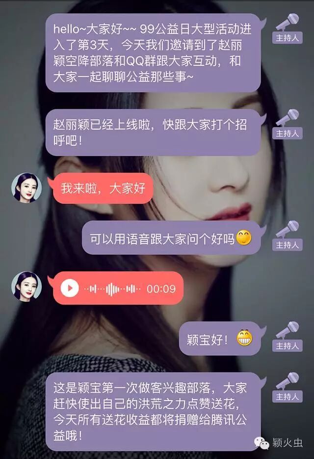 赶在99公益日之前,赵丽颖在QQ兴趣部落的“明星大咖’益‘起聊”活动中与网友粉丝热烈互动。