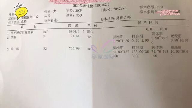 恭喜39岁的P小姐验孕成功,P小姐二胎,备孕许久没有怀上,检查各方面都挺好的,主要问题是先生精子弱一点. P小姐非常果断独立的一个人,咨询试管后说做就做,一个人到公司来了解后就确定下来了。移植后休息三天回国验孕,第一次移植后第八天HCG83.6,移植后15天复查HCG已经达到6764.4了,翻倍很好,希望接下来也顺顺利利的