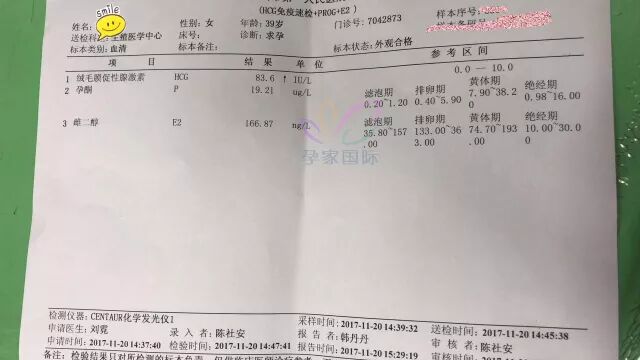 好孕消息11月最好一个星期28号验孕成功一个,今天验孕成功两个,一个是移植第六天血值,另外两个是移植第七天血值。恭喜三位准妈妈其中一个案例移植阶段也是一波三折,今天终于修成正果,在此祝愿她们平安顺利,幸福安康!祝愿所有赴泰就诊的客户全部成功!