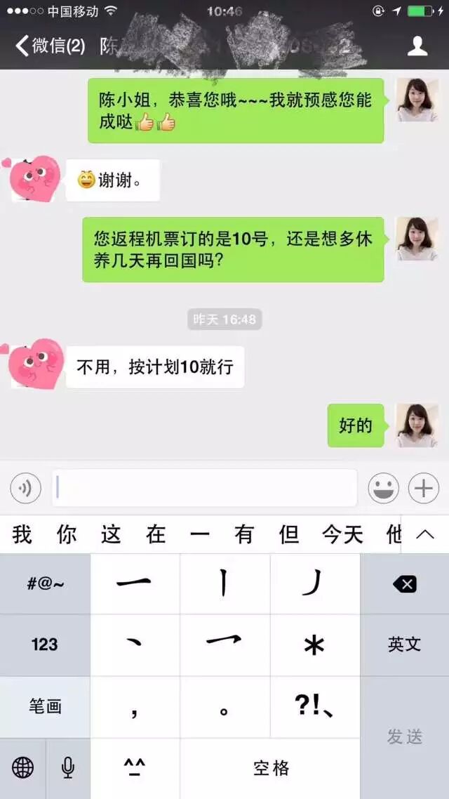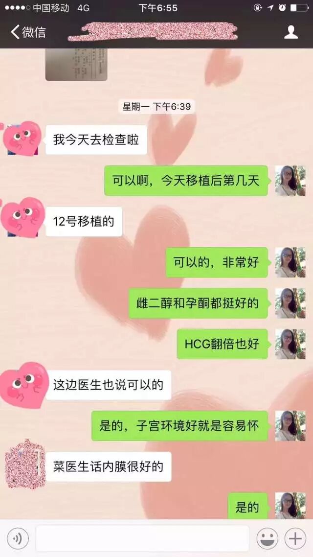 8月份安排去泰国促排取卵,有5男1女六个囊胚,回国后休养了几个月,11月初移植,移植第6天验孕血HCG已经有50多了,真是可喜可贺,多亏陈小姐的坚持不懈,也多亏对泰国技术的信心,乘身体状态相对较好时抓紧操作,终于可以顺利圆满的带宝贝回家了