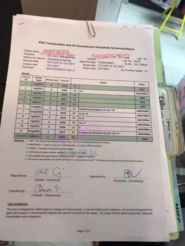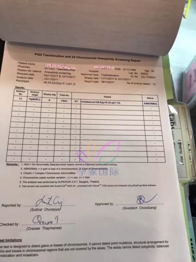 针对染色体异常的客户,一定要趁卵巢储备功能足的时候抓紧时间促排把卵子取出,29岁的H小姐,染色体平衡易位,自己怀孕几次不是生化就是胎停育,期间到广州中山医和香港都咨询过,了解到泰国第三代试管后,最后还是选择了泰国。