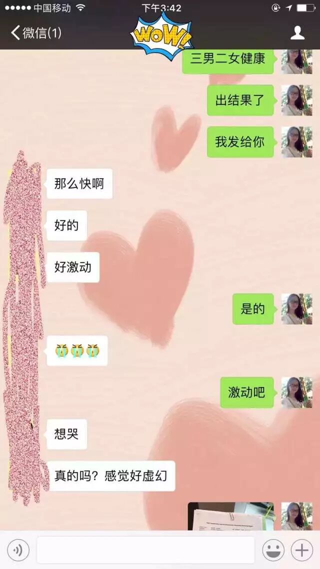 恭喜湖南客户周女士顺利怀上第一胎。周女士今年40岁,5月份在湖南省妇幼做了一次试管,当时检查结果都是不错的,结果移植后以失败告终,6月份咨询到我们,正好报名来参加了我们6月25号举办的亲诊会。