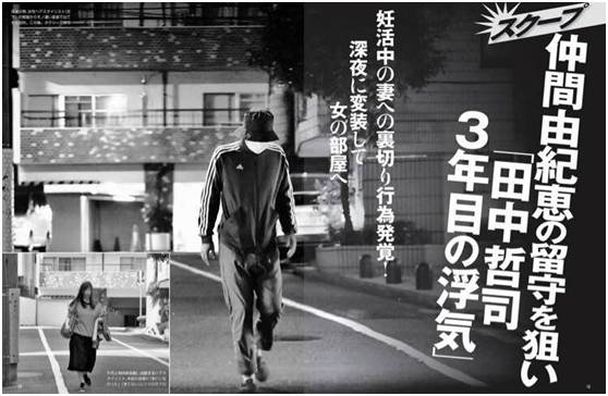 据杂志《FRIDAY》爆料,仲间由纪惠的丈夫田中哲司五月上旬被拍到深夜变装密会情妇,婚内出轨。