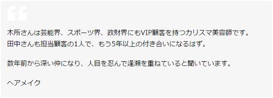 据说这位女性是一名造型师,在业界颇有名气,活跃于政经界、体育界、演艺圈,田中是她的常客。