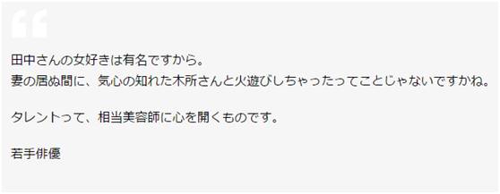 事发后田中的事务所表示不清楚具体情况,但坚持称两人并没有关系。