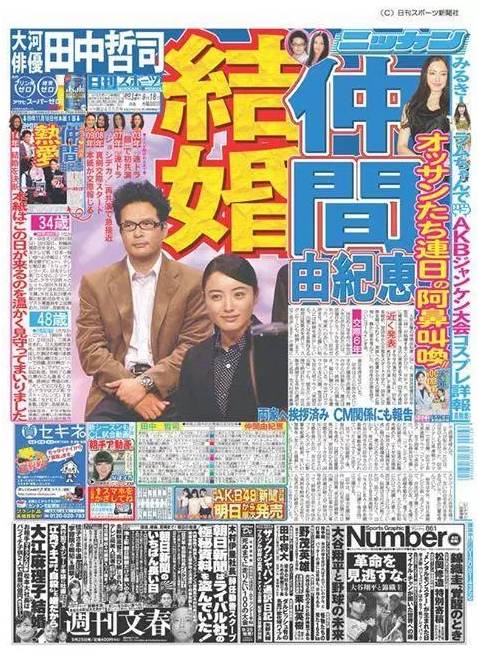 消息曝光后接受采访,田中哲司满脸笑容,表示仲间由纪惠是自己绝对不能错过的人。