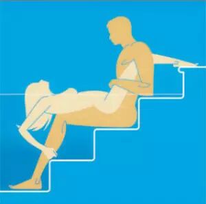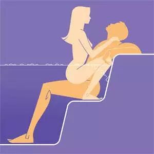 这是上一种体位的变体。它尤其适合游泳池场所。一列阶梯助你直达极乐的天国。如上一种体位不同的是,双方的肢体可能一直处于紧张状态。这能够促使你们保持兴奋的精神状态。所以说,它显得非常富有深情。女性对男性的仰合也令她高贵而妩媚。