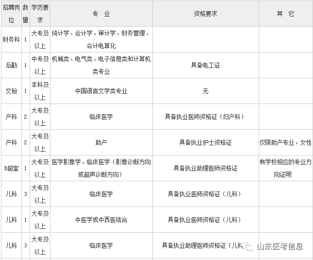 5、儿科、产科、B超室、乳腺科等岗位需取得相应的执业医师(或执业助理医师)资格证;护理岗位需取得执业护士资格证。