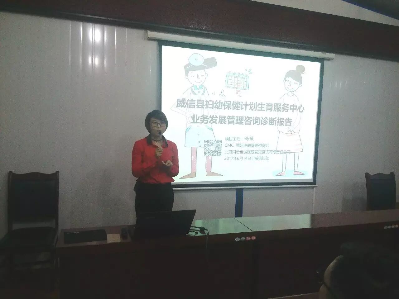 2017年6月14日19:00北京同合至诚医院管理咨询有限责任公司威信妇幼项目组冯敏老师在四楼会议室为医院全体员工发布了《威信县妇幼保健计划生育服务中心业务发展管理咨询诊断报告》,并讲解了新绩效方案的核算单元与核算方法。会议由周天崇院长主持。