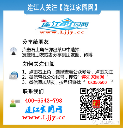 连江人关注连江家园网,请点击标题下面的连江家园网,然后再点关注!关注后你将时刻掌握连江新闻、人才招聘、买房租房、连江美食等连江本地生活资讯!连江人关注【连江家园网】