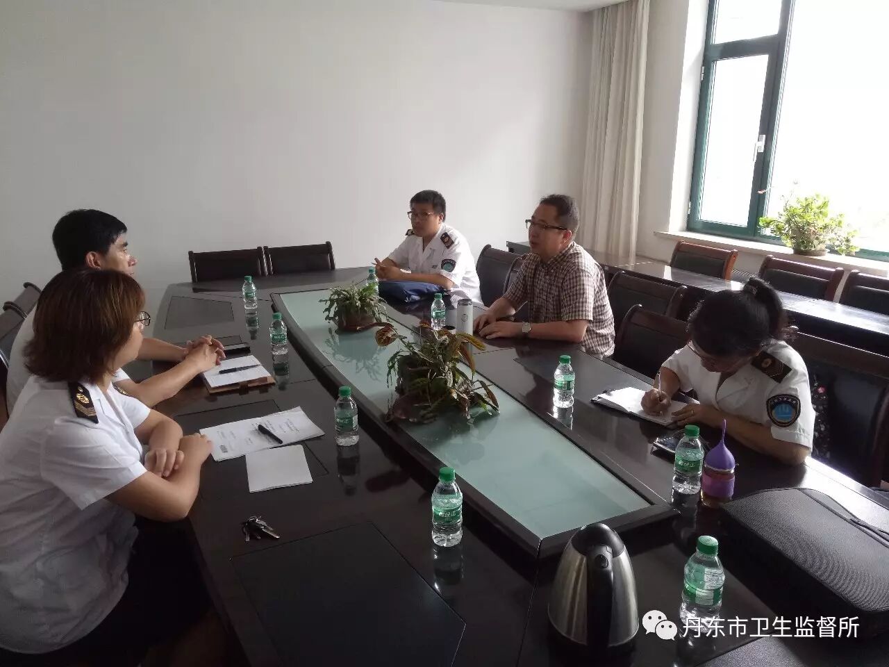 省督导组首先听取了丹东市卫生监督所杨春盛所长关于丹东市开展计划生育监督执法工作情况的介绍,并围绕落实《辽宁省产前诊断技术管理实施细则》、明确监管职责,蓝盾行动工作以及促进医改、充分发挥卫生监督作用等方面展开座谈。