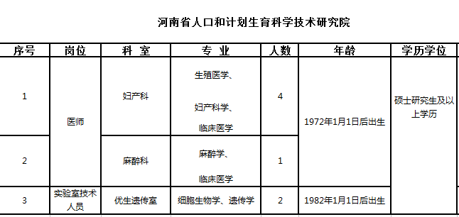 原标题:河南省人口和计划生育科学技术研究院2017年公开招聘工作人员方案