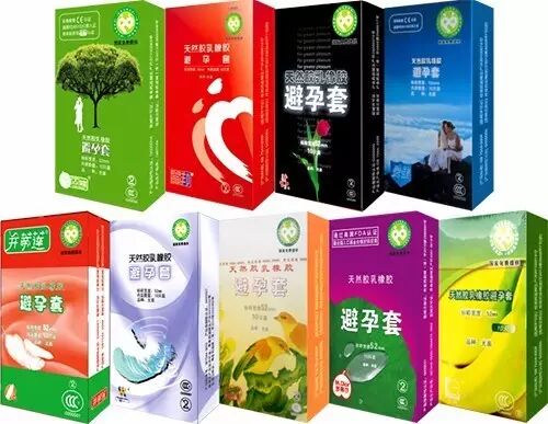避孕套:多个品牌的天然胶乳橡胶避孕套,包括光面和浮点、螺纹式;