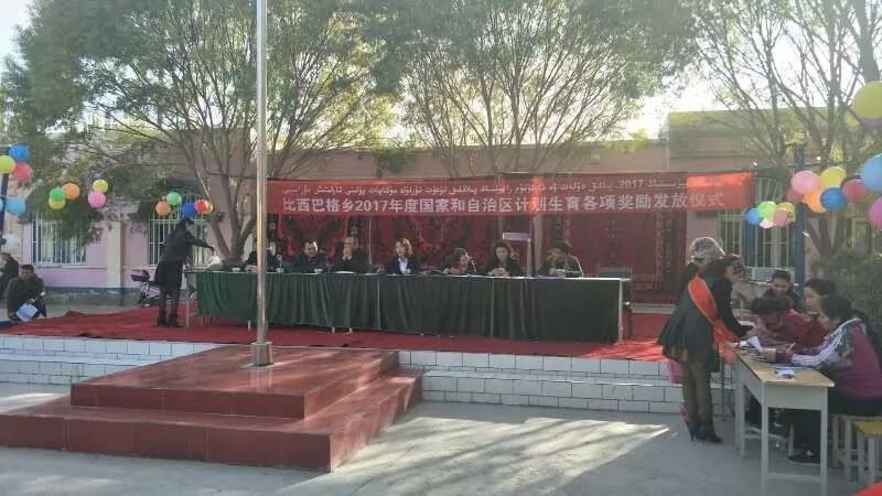 10月25日上午,比西巴格乡计生办组织计生领取了“两证”的家庭,在博斯坦二村村委会举行了2017年度国家和自治区计划生育各项奖励发放仪式。乡计生干部、村级计生宣传员和170余户领证家庭参加了发放仪式。仪式中乡长吐尔洪·艾尼丁和乡纪检委书记努尔尼沙·依不拉音发表了讲话,对领证家庭支持计划生育工作表示感谢,并对国家和自治区计划生育优惠政策现场做了解说及宣传,同时对现场群众提出的问题也给予了解答。