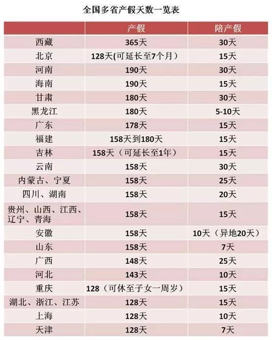 在《女职工劳动保护特别规定》规定产假可休98天的基础上,全国多个省份纷纷制定适用于本地区的《人口与计划生育条例》,对产假做出了进一步规定。
