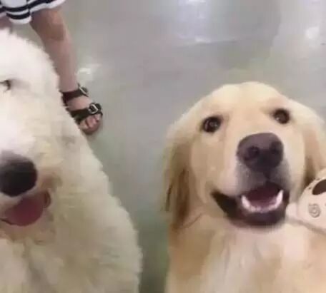 看上去和和美美的两只汪,古牧温柔金毛暖心