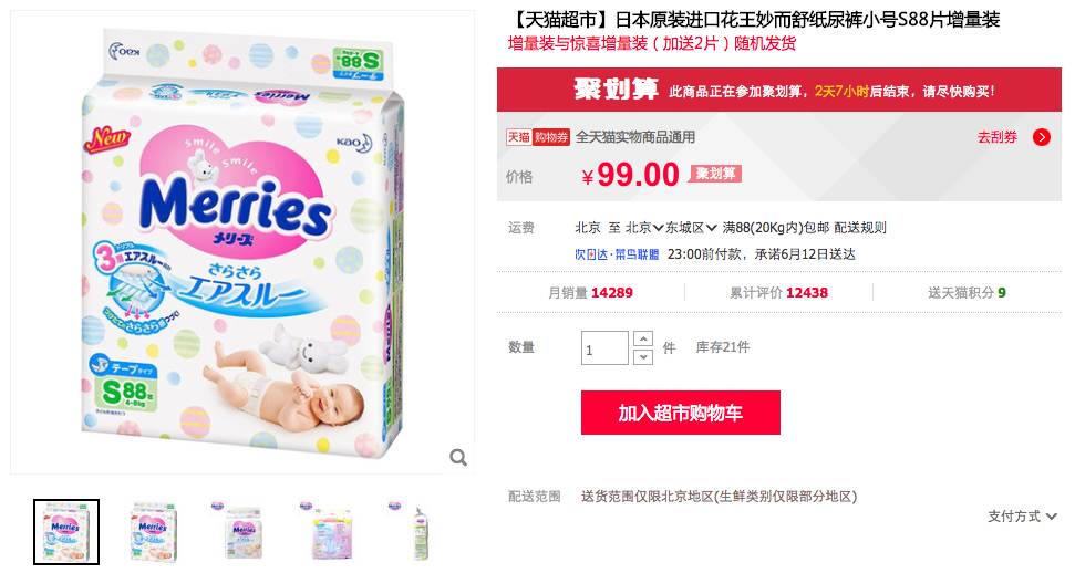 意思就是,天猫超市618买88花王还送2片平均下来每片纸尿裤连1块钱都不到就算宝宝每天用3片,连续用6个月加上优惠券能抵扣掉100元