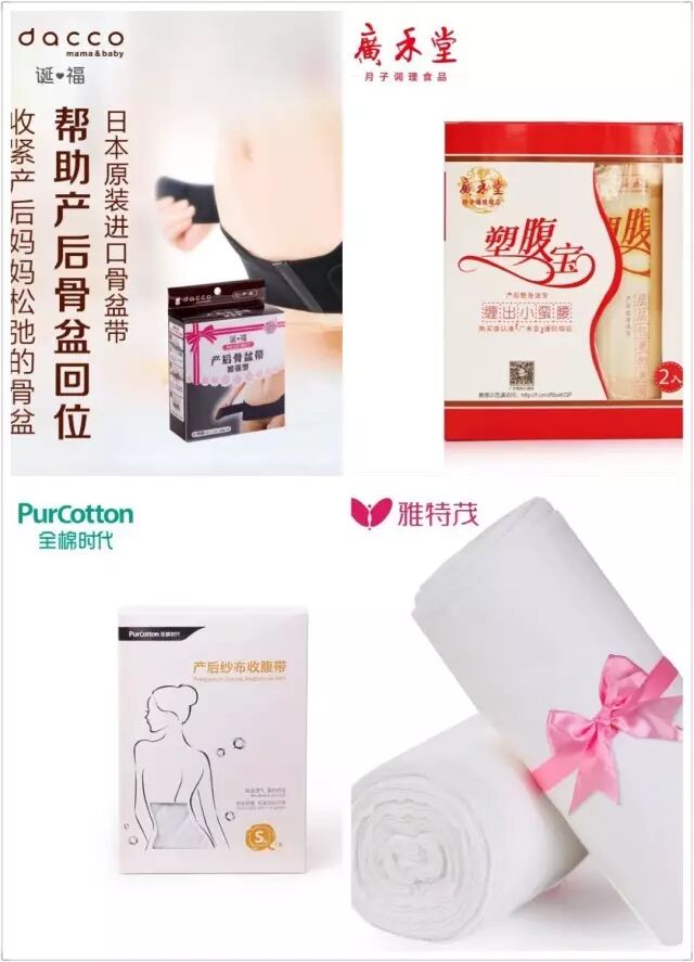 束腹带,买过全棉时代,广禾堂的纱布束缚带,雅特茂的纱布束缚带,还有三洋的盆骨带。全棉时代的挺好用,自己就可以解决,粘扣型,也不容易往上窜,方便使用才能坚持每天用。广禾堂的不推荐,纱布太窄,容易卷边,躺一会就全窜上面去了,不好用,还挺贵。雅特茂的,同样是纱布,雅特茂的宽很多,缠起来也使得上劲,一次性包裹面积大,因为宽也不容易卷边,还特别便宜,这个好用!但是需要月搜或家人帮忙才缠的紧,推荐喜欢用纱布的美妈。骨盆带是个鸡肋,还不便宜。躺一会就窜上面去了,起不到束缚的作用,没用几天就搁置了。