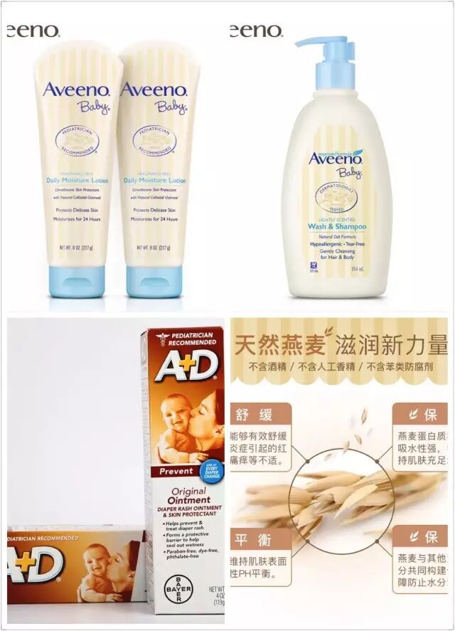 身体乳是aveeno,每天洗完澡做抚触,吸收快,保湿性好,没有香味,喜欢。