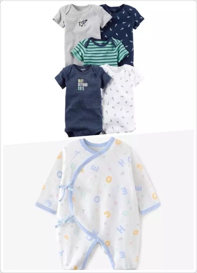 和尚衣最好穿,纯棉就行。买衣服千万不要买新生儿穿的号码,NB号,例如carter’s家的包屁衣,NB刚出月子就穿不了了。衣服买0~3个月的合适。优衣库的棉质最软和,英式的和尚衣也手感不错。衣服要带个四五件。帽子和袜子也都备两双,出院穿。