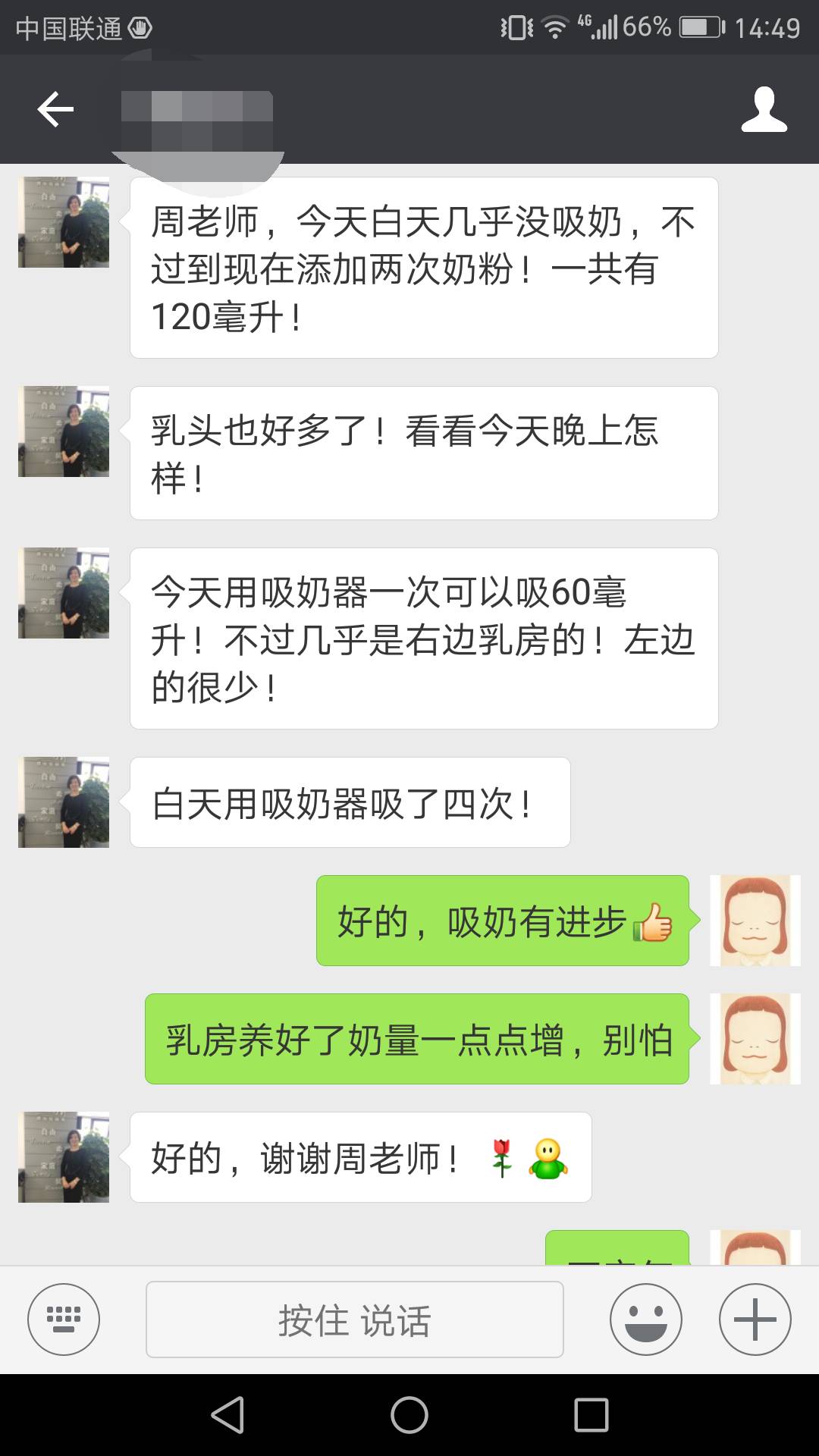 【手法刺激怎样帮助奶量蹭蹭往上涨?】当妈妈乳房状况转好,乳腺通畅后,我们就会安排老师集中给妈妈进行刺激奶量的服务,通过双侧同时刺激多个奶阵并充分排奶的过程,在舒适的状态下最大限度增加妈妈的乳汁在单位时间内的排出量,给乳房“猛下订单”,刺激乳房高效产奶。由于我们手法无痛舒适,所以乳房既不会受到伤害,又能够增加产量,通常2-3次手法刺激就能产生明显的增奶效果。我们还会在过程中帮助妈妈记录奶阵的特点,指导在家的喂养调整。