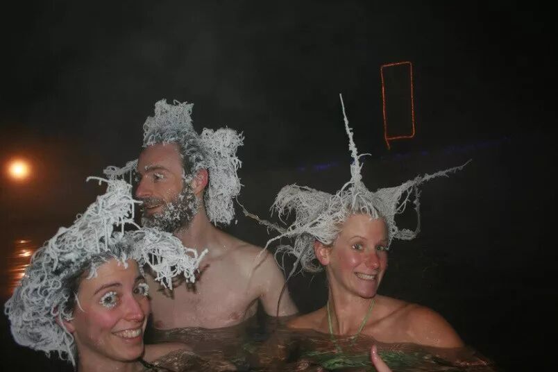 俄罗斯是一个幅员辽阔的国家,其国土面积排在世界第一位。俄罗斯冬季寒冷,部分维度高的地区最低温度可达到零下30到40度。一些人为了图新鲜,决定在严寒去泡一把温泉。没想到他们的头发全都结成了冰。一边泡温泉,一边头发结冰,真是罕见。男子的毛发都染上了冰霜,感觉有点恐怖。