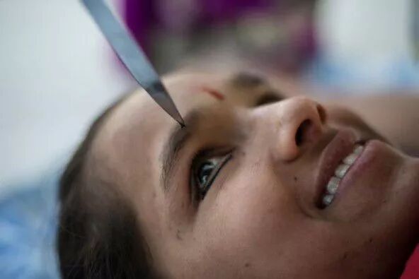 都知道瑜伽的始祖来自印度,印度几乎是全民练瑜伽,身体非常灵活柔软,图中这位小女孩双腿已经灵活到出神入化.她用刀尖蘸颜料来为自己画眼线,看动图更能看出她的厉害之处.刀尖是非常锋利的,用力不到位眼线画不上,用力过猛眼睛戳伤.小女孩从小练瑜伽,如今才十四岁,能达到这种地步很不容易.直击女孩双脚操控刀子画眼线,估计也很紧致,腋下都流汗了,小女孩从小练瑜伽,不仅腿功好,双臂也特别有力气.