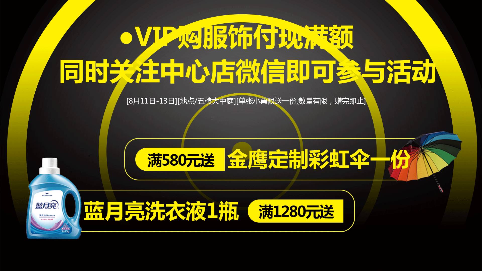 VIP购服饰付现满额同时关注中心店微信即可参与活动
