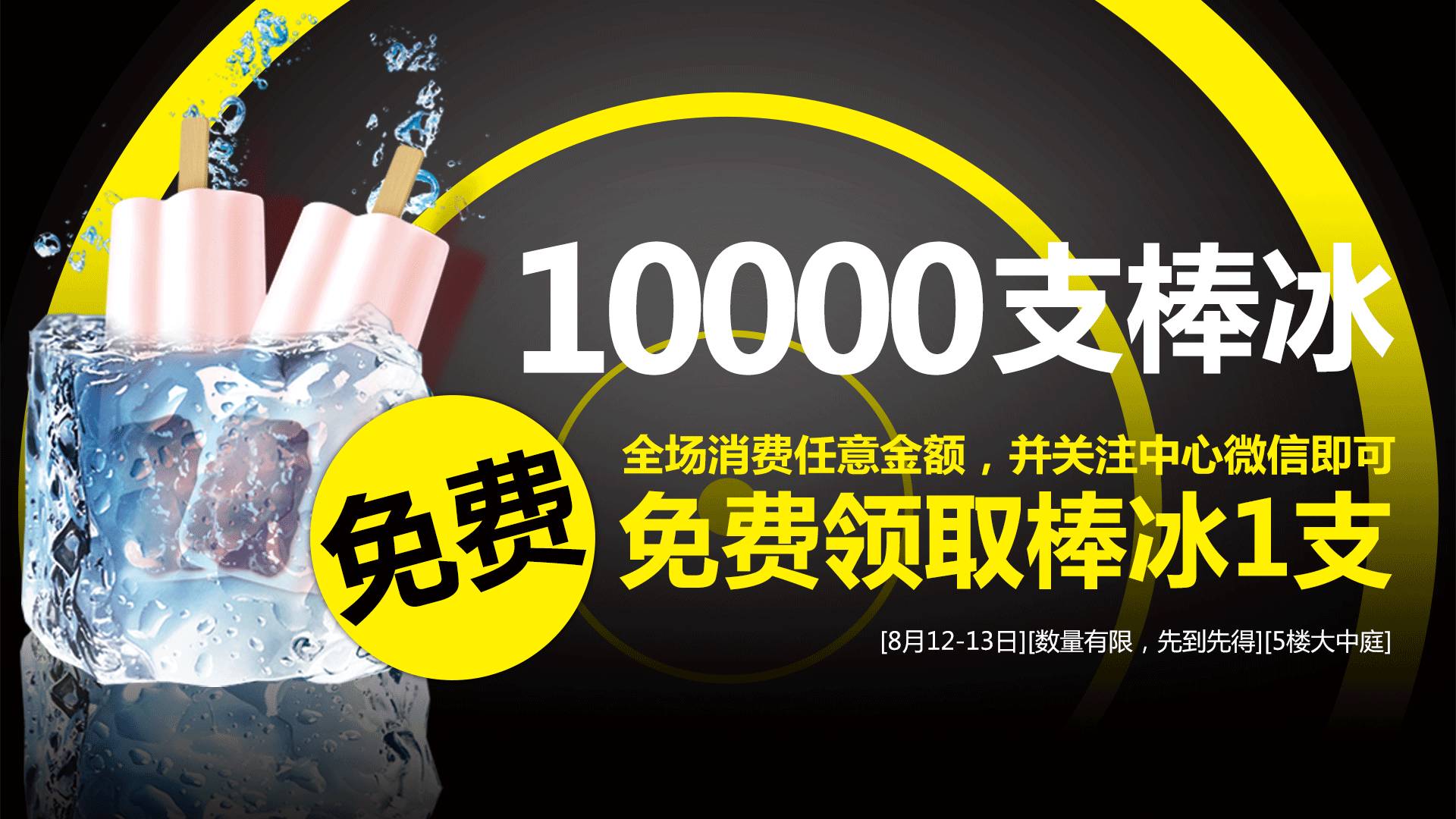 全场消费任意金额,并关注中心微信即可免费领取棒冰1支