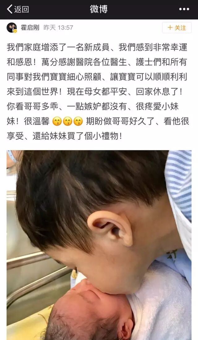 4月24日,霍启刚郭晶晶这对恩爱有加的夫妻在微博宣布家里又添了一个女儿,这下儿女双全, 完美的诠释了“人生赢家”的样子。