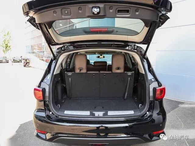 英菲尼迪QX60的行李厢空间为447L,配合全系标配的后排座椅按比例放倒功能,能够使行李厢容积扩增至2144L,大大提高了车辆的运载能力。
