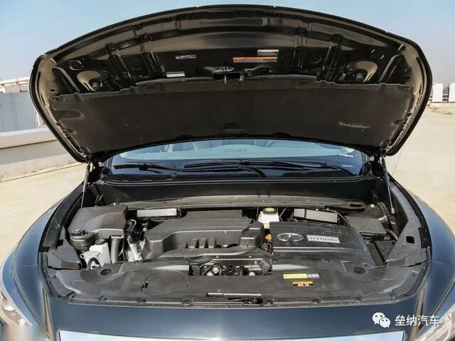 在动力方面,2016款英菲尼迪QX60提供了2.5L机械增压发动机+电动机,3.5L自然吸气发动机两款动力配置可供选择。其中2.5L机械增压发动机+电动机的混动版本车型所搭载的2.5L机械增压发动机,拥有172kW(234Ps)的最大功率以及250Nm的最大扭矩,它所搭载的电动机的最大功率为15kW(20Ps),最大扭矩为160Nm;3.5L自然吸气发动机的最大功率为204kW(277Ps),最大扭矩为334Nm。在传动系统方面,2016款英菲尼迪QX60全系采用的是模拟7挡CVT变速箱。