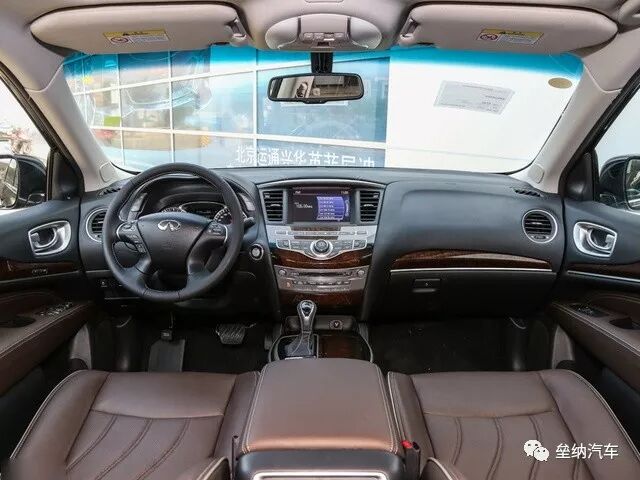 2016款英菲尼迪QX60的内饰保持了日系高端车一贯豪华、精致的设计风格——整个中控台以及前后门内饰板均使用了仿皮材质进行包裹并通过细腻的缝线进行点缀,不仅做工出色,手感也很上乘。在内饰的细节上,QX60的表现也非常出色。例如,手套箱上方、中控面板等部位被大面积桃木内饰板所覆盖,很好的提升了内饰的豪华感。值得夸奖的是,QX60的隔音降噪表现真的是非常不错,关上车门能够明显感受到车内优秀的密闭性,这样的水平相比同级别其他车型而言绝对名列前茅。