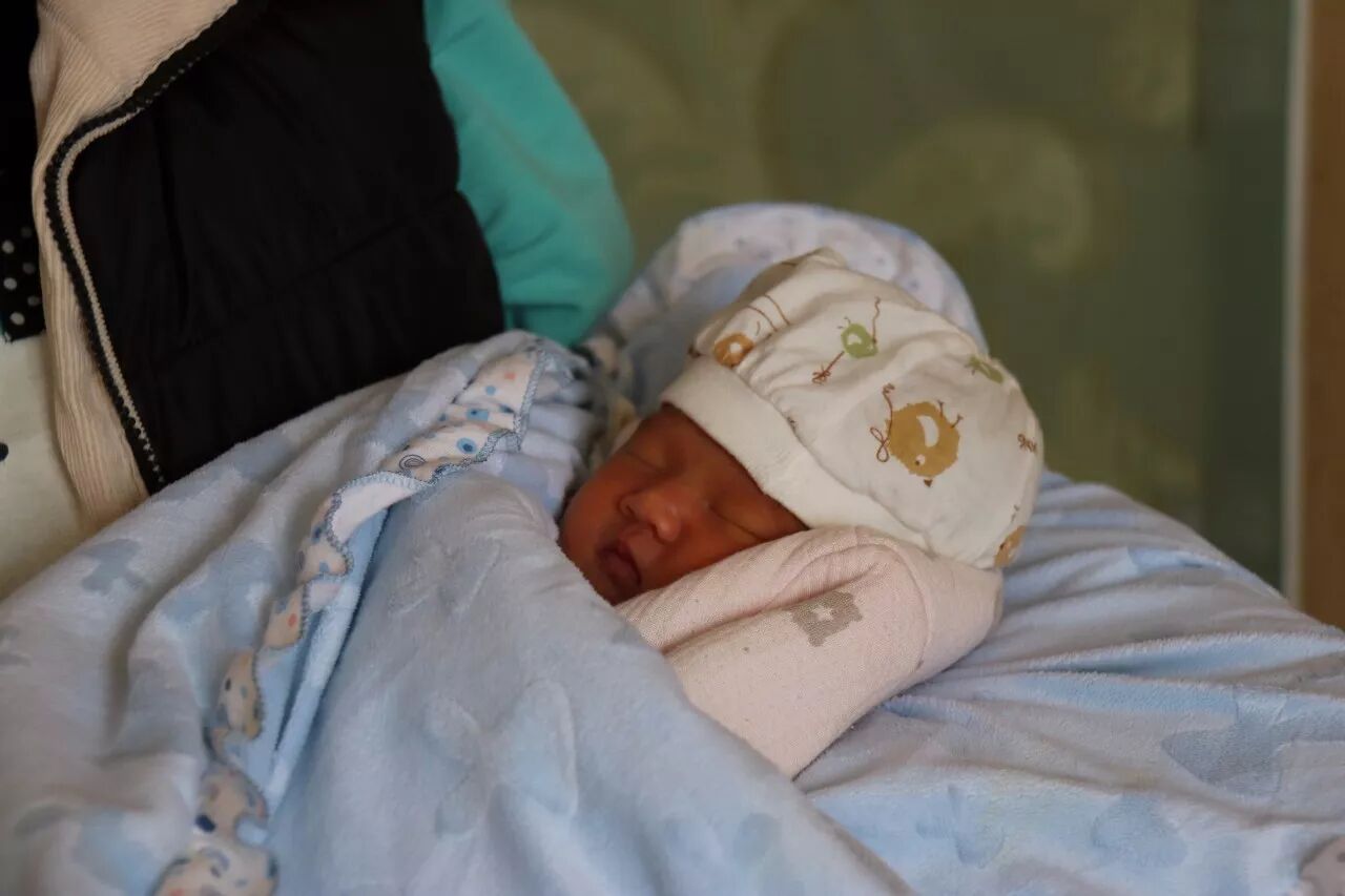 宝宝在李妈妈的怀抱中进入甜美的梦乡