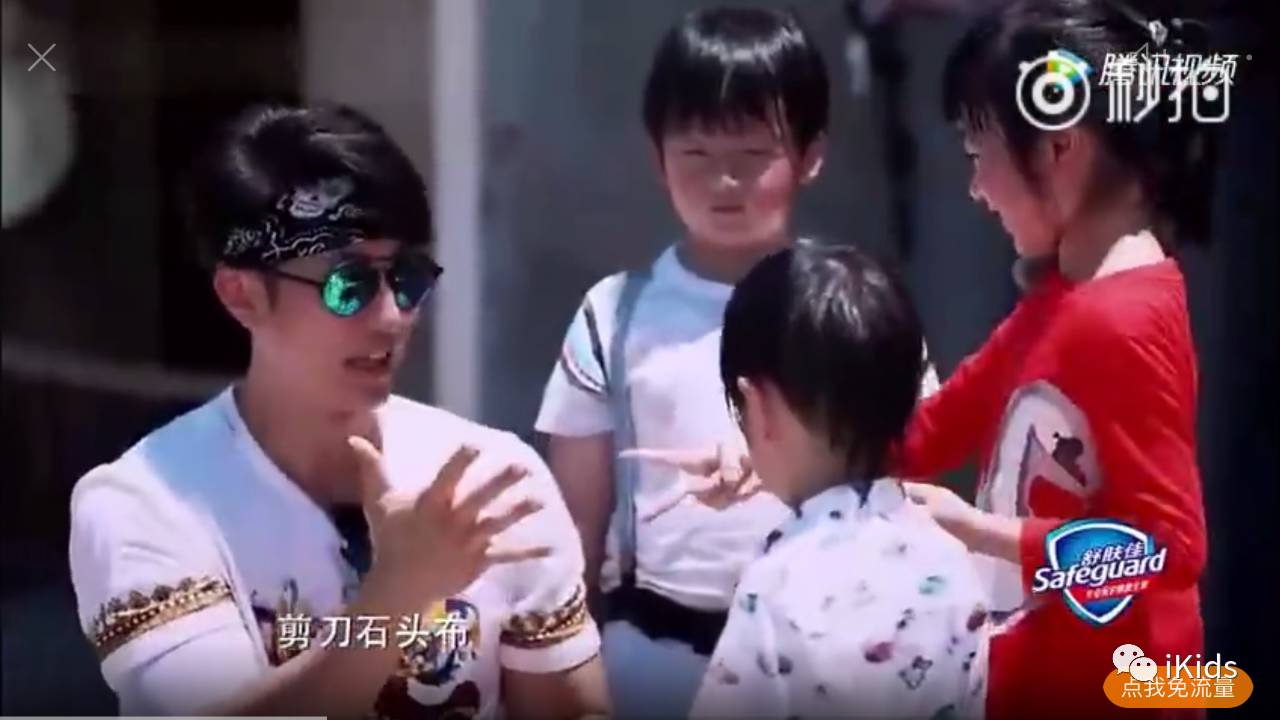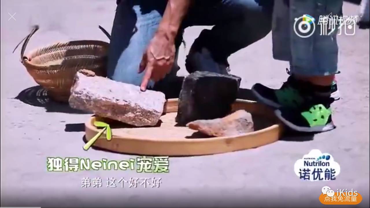 选房子,俩娃要的石头不一样,干脆吴尊再制造一个“麻烦”,他选第三块石头。然后开始石头剪刀布俩俩猜拳:
