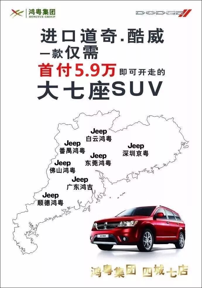 来广东鸿粤,享道奇酷威全国最低价!