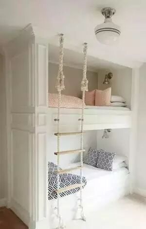 10、小面积卧室也能拥有精致的上下床,嵌入墙体的设计,有趣的绳索攀爬设定,保留一分童趣。